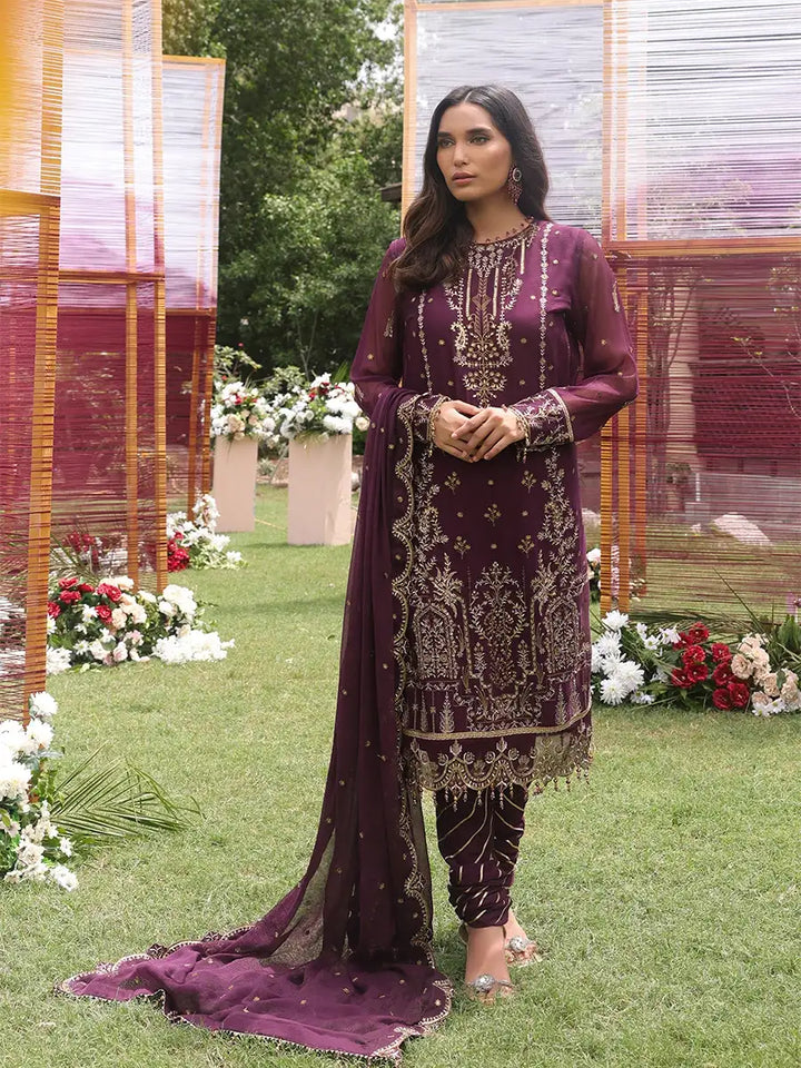 3PC STITCHED FESTIVE CHIFFON EMBROIDERED SUIT