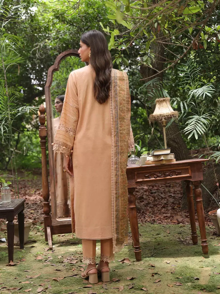 3PC STITCHED LUXURY RICE SLUB EMBROIDERED SUIT