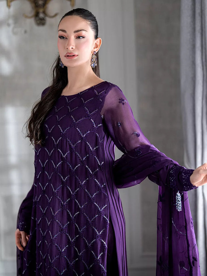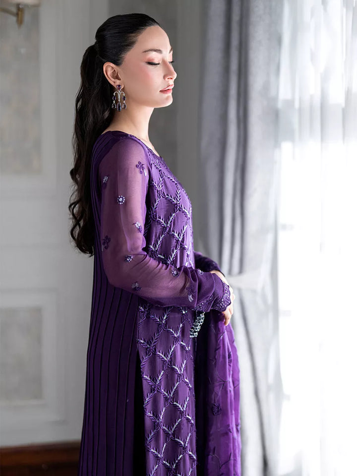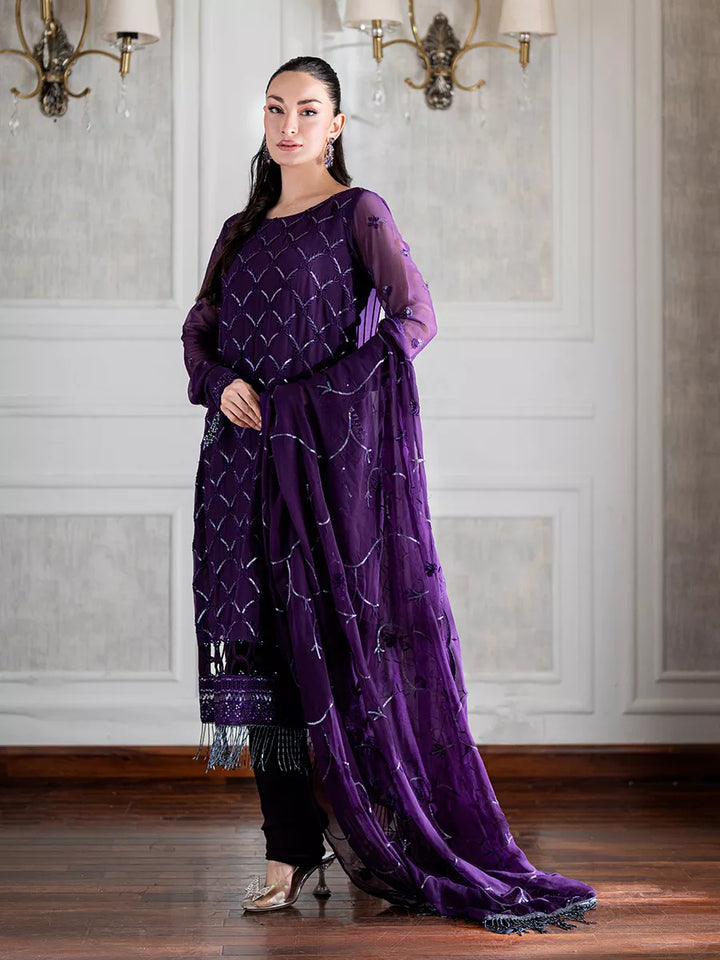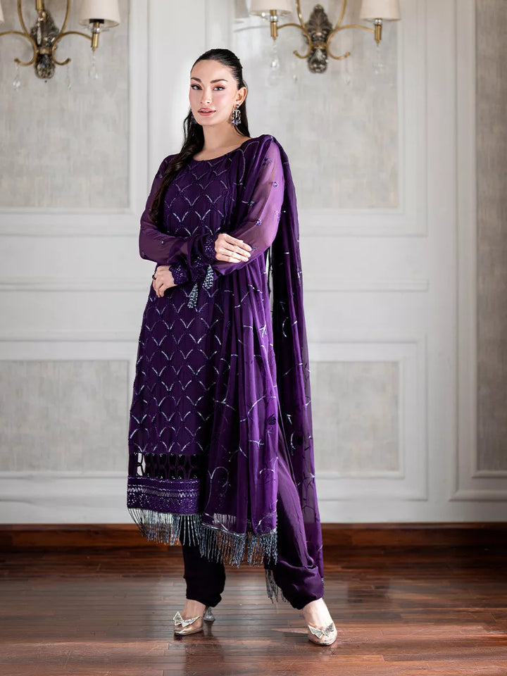 Beautify your wardrobe with this signature 3PC unstitched chiffon embroidered suit — a flawless fusion of soft textures, intricate detailing, and graceful charm. This ensemble promises to add a timeless essence to your wardrobe, making every occasion effortlessly memorable.