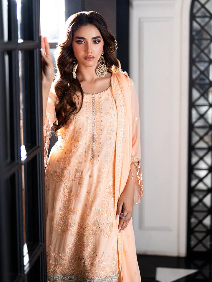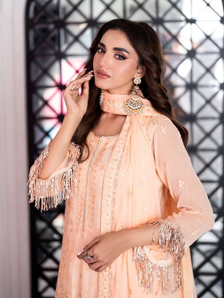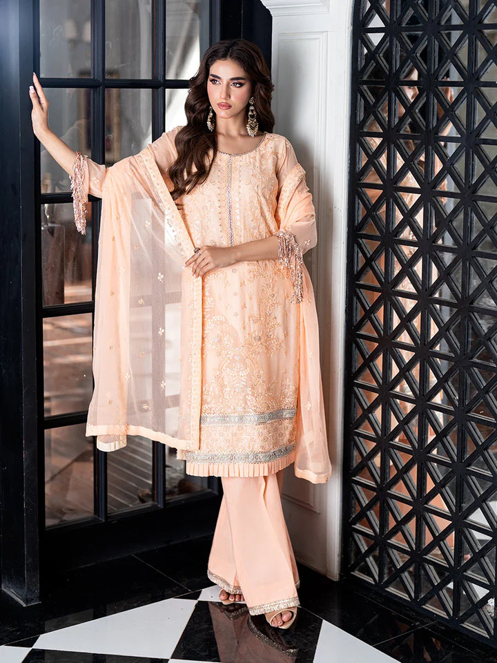 Beautify your wardrobe with this signature 3PC unstitched chiffon embroidered suit — a flawless fusion of soft textures, intricate detailing, and graceful charm. This ensemble promises to add a timeless essence to your wardrobe, making every occasion effortlessly memorable.