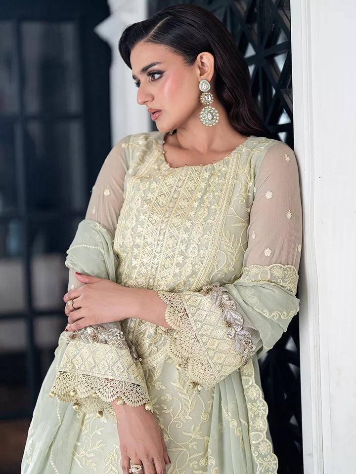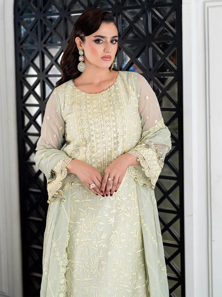 Beautify your wardrobe with this signature 3PC unstitched chiffon embroidered suit — a flawless fusion of soft textures, intricate detailing, and graceful charm. This ensemble promises to add a timeless essence to your wardrobe, making every occasion effortlessly memorable.