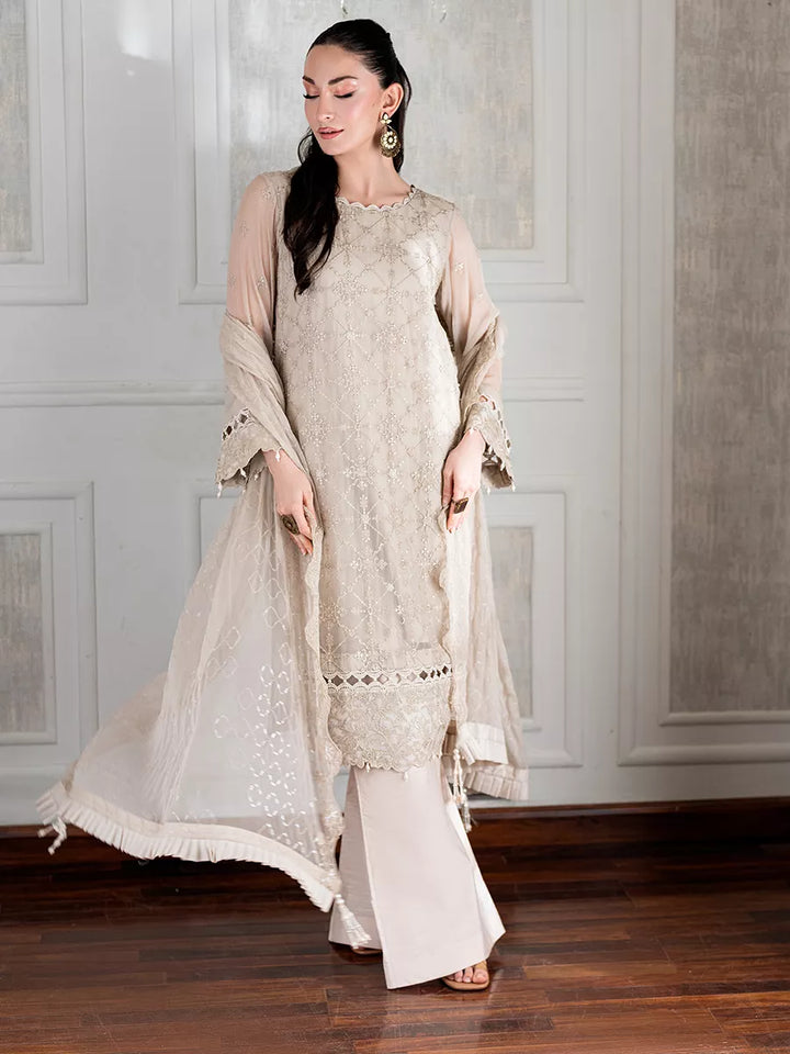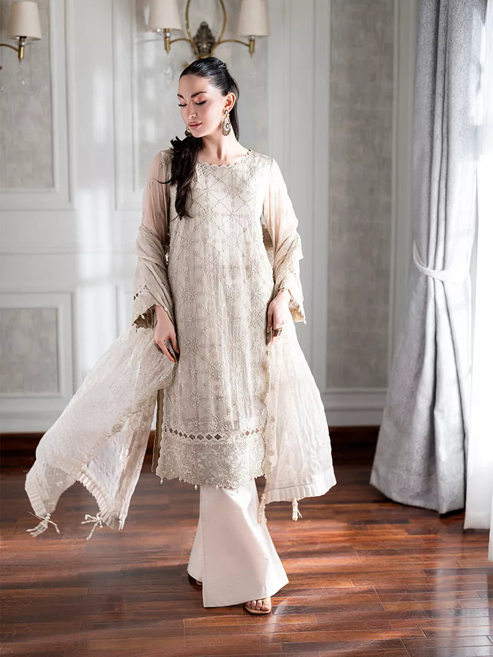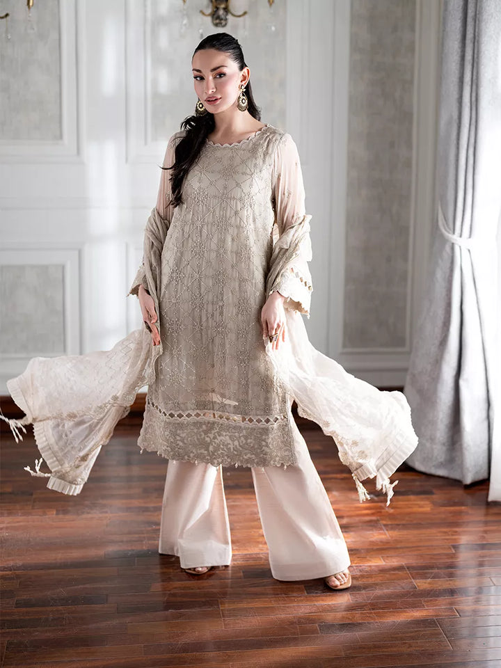 Beautify your wardrobe with this signature 3PC unstitched chiffon embroidered suit — a flawless fusion of soft textures, intricate detailing, and graceful charm. This ensemble promises to add a timeless essence to your wardrobe, making every occasion effortlessly memorable.