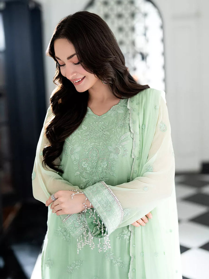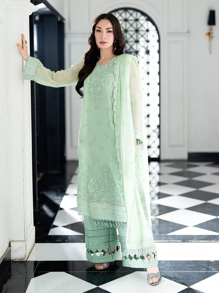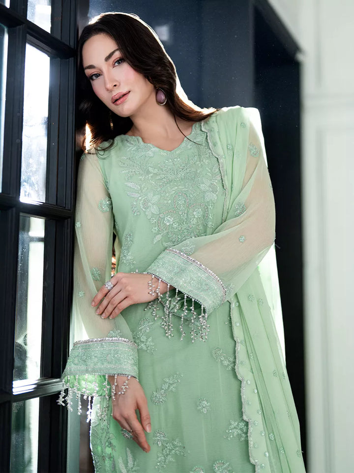 Beautify your wardrobe with this signature 3PC unstitched chiffon embroidered suit — a flawless fusion of soft textures, intricate detailing, and graceful charm. This ensemble promises to add a timeless essence to your wardrobe, making every occasion effortlessly memorable.