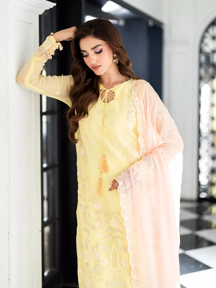 Beautify your wardrobe with this signature 3PC unstitched chiffon embroidered suit — a flawless fusion of soft textures, intricate detailing, and graceful charm. This ensemble promises to add a timeless essence to your wardrobe, making every occasion effortlessly memorable.
