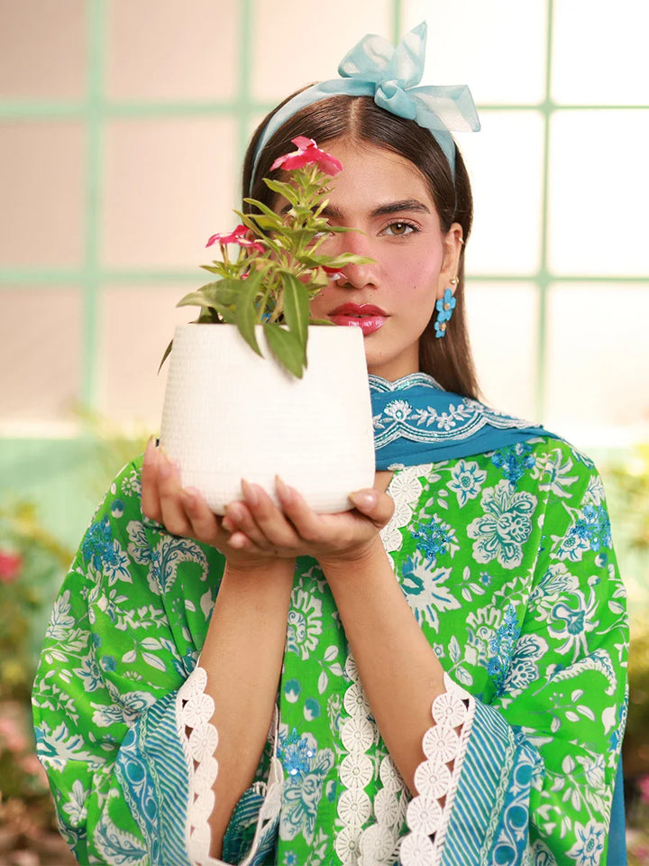 Discover the Izel collection by Salitex, featuring a stylish lawn printed embroidered shirt, a vibrant chiffon dyed embroidered dupatta, and a classic cambric dyed plain trouser.