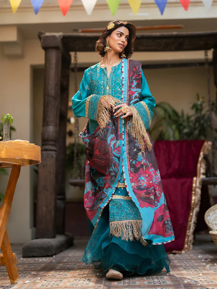 Celebrate tradition with our 3PC Unstitched Festive Embroidered Suit. Designed with meticulous embroidery on premium fabric, this outfit offers versatility and sophistication, making it an ideal choice for any special occasion. Create your signature style with grace and charm.