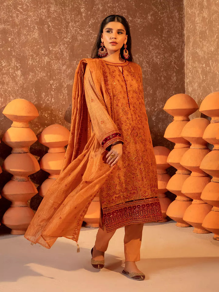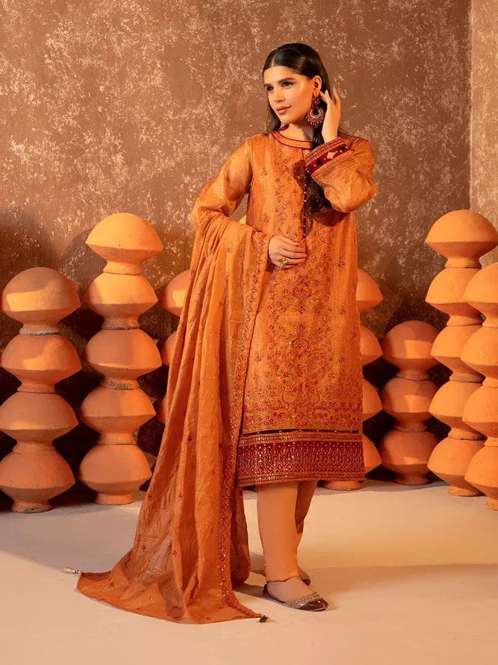 Celebrate every occasion in style with our 3PC unstitched festive embroidered suit. Designed on high-quality fabric with delicate embroidery, this ensemble brings a touch of tradition, luxury, and comfort — all within your reach.