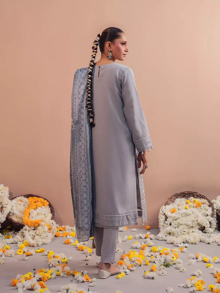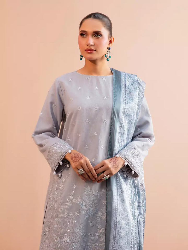 Celebrate tradition with our 3PC unstitched festive embroidered suit, crafted from premium fabric with elegant embroidery a versatile and stylish pick for any occasion.