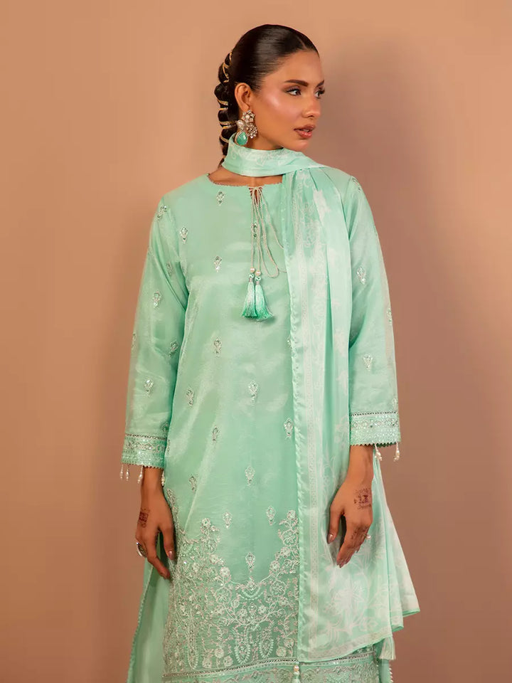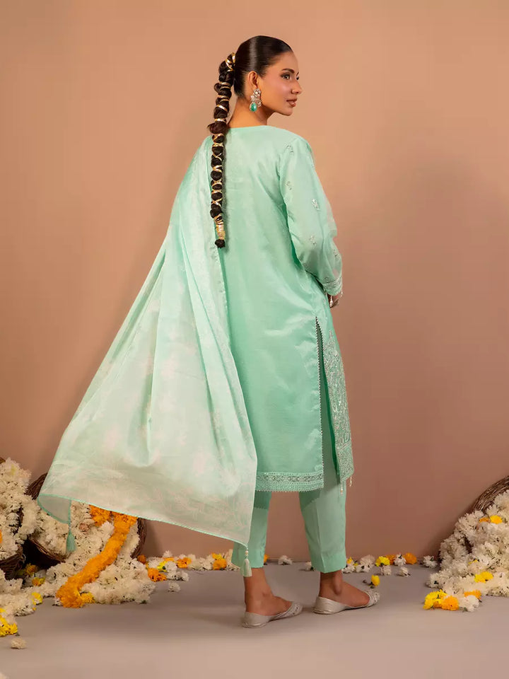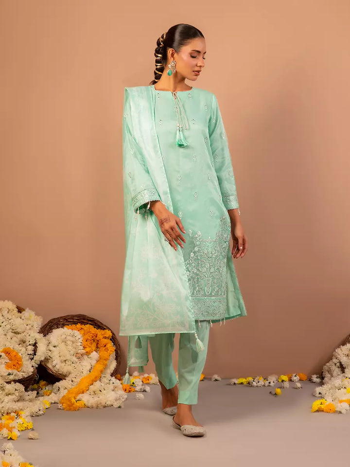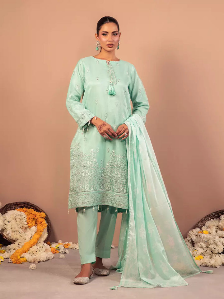 Celebrate tradition with our 3PC unstitched festive embroidered suit, crafted from premium fabric with elegant embroidery a versatile and stylish pick for any occasion.