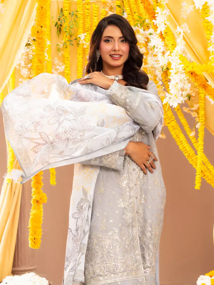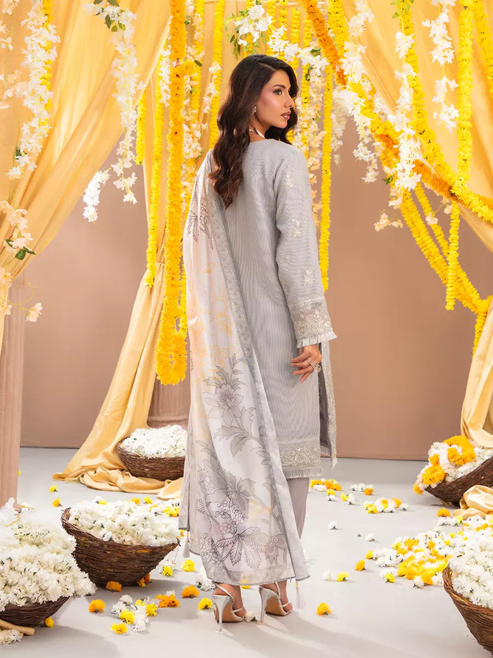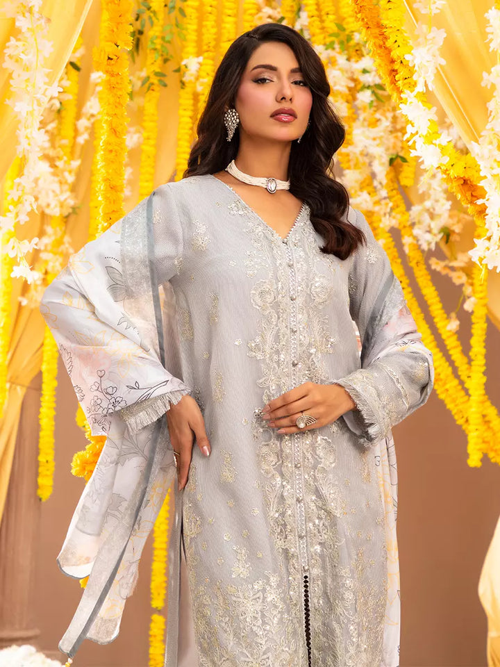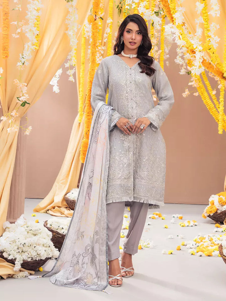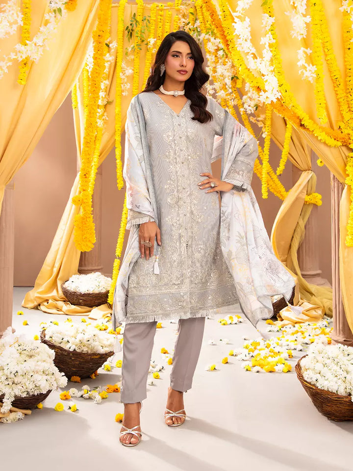 Celebrate tradition with our 3PC unstitched festive embroidered suit, crafted from premium fabric with elegant embroidery a versatile and stylish pick for any occasion.