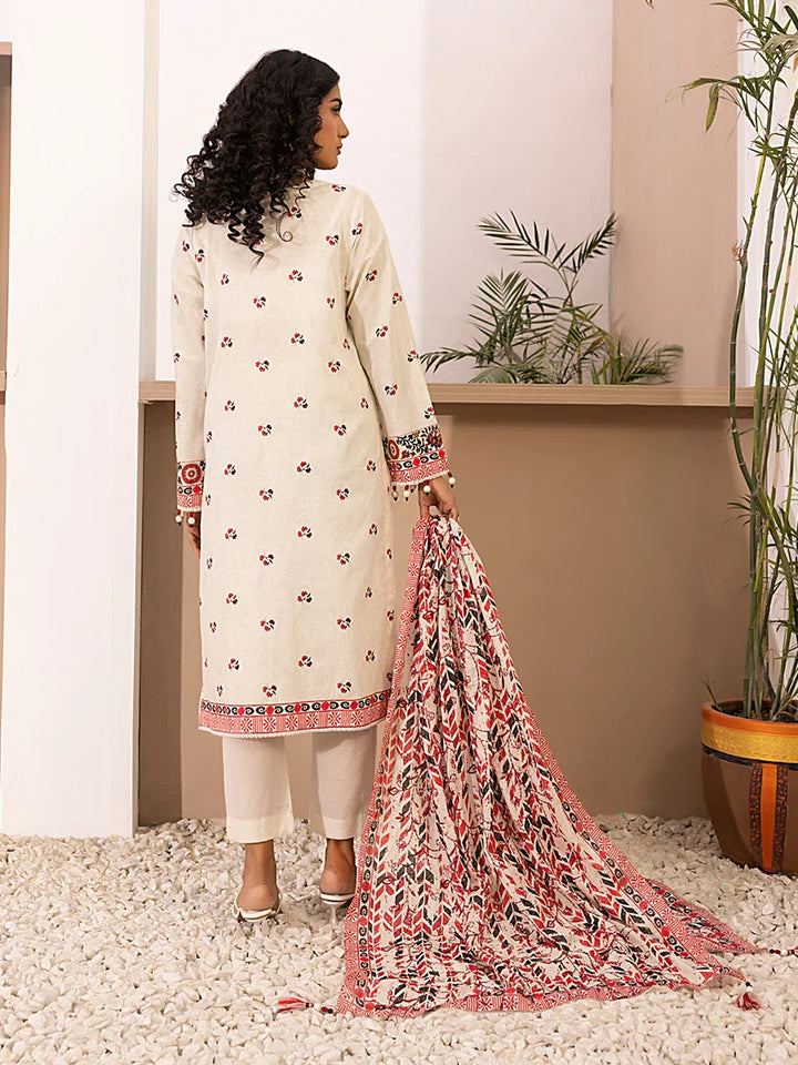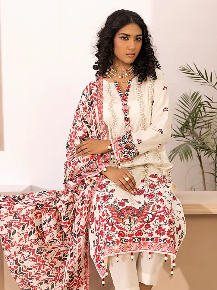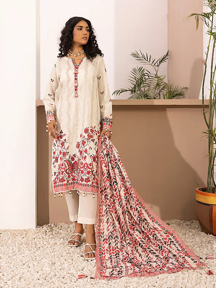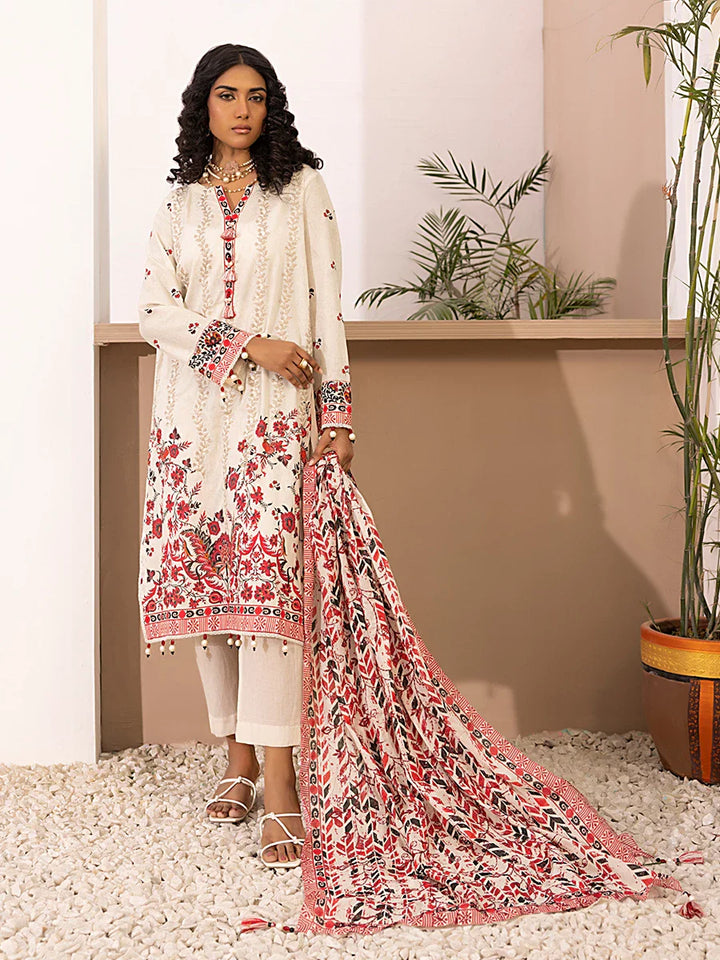 Discover elegance and comfort with this beautifully designed women's ensemble. The lawn shirt features intricate prints and embroidery, complemented by a finely embroidered dupatta for a graceful touch. Paired with a soft cambric dyed trouser, this outfit offers the perfect blend of style and ease, making it an ideal choice for both casual and semi-formal occasions.