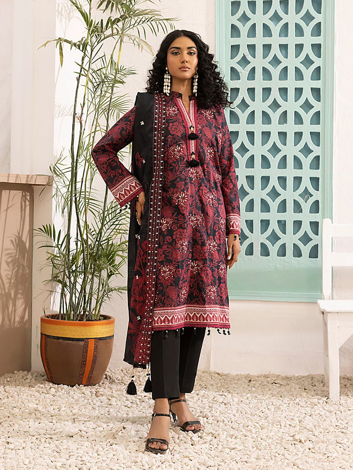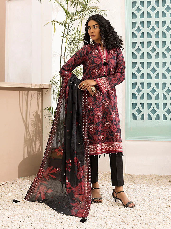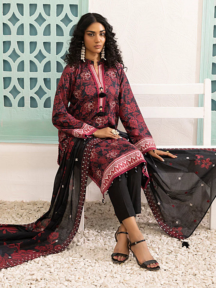 Discover elegance and comfort with this beautifully designed women's ensemble. The lawn shirt features intricate prints and embroidery, complemented by a finely embroidered dupatta for a graceful touch. Paired with a soft cambric dyed trouser, this outfit offers the perfect blend of style and ease, making it an ideal choice for both casual and semi-formal occasions.