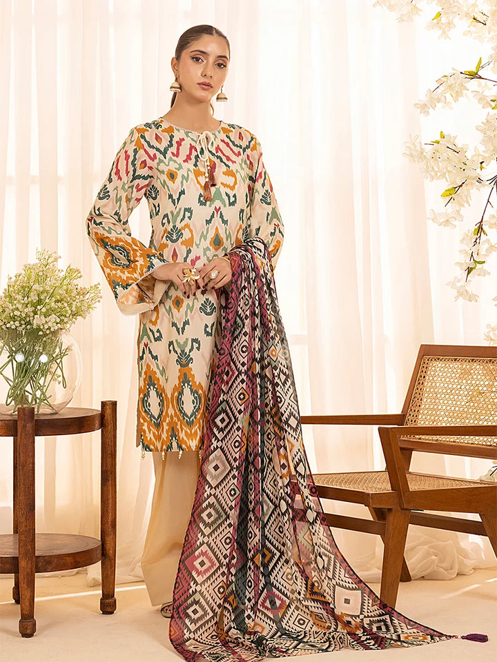 Style up your wardrobe with 3-Piece Unstitched Lawn Collection. Featuring a vibrant Lawn printed shirt, cambric dyed trouser, and a beautifully Lawn printed dupatta.