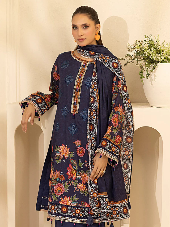 Style up your wardrobe with 3-Piece Unstitched Lawn Collection. Featuring a vibrant printed shirt, cambric dyed trouser, and a beautifully printed dupatta.