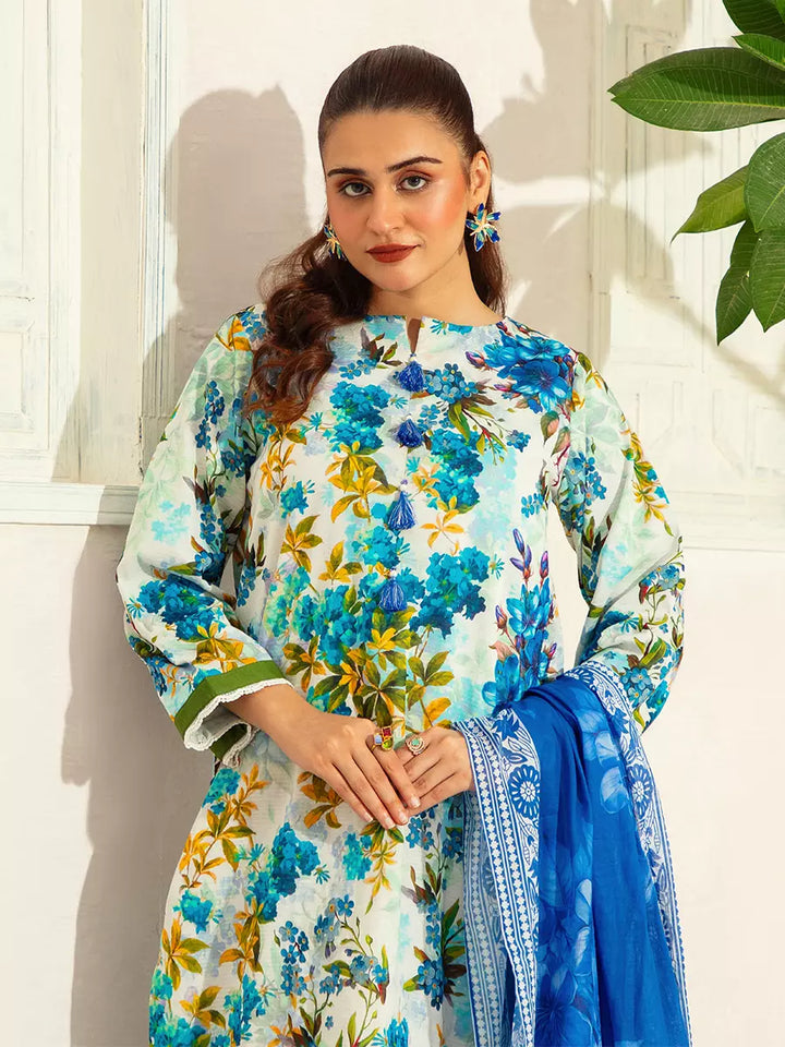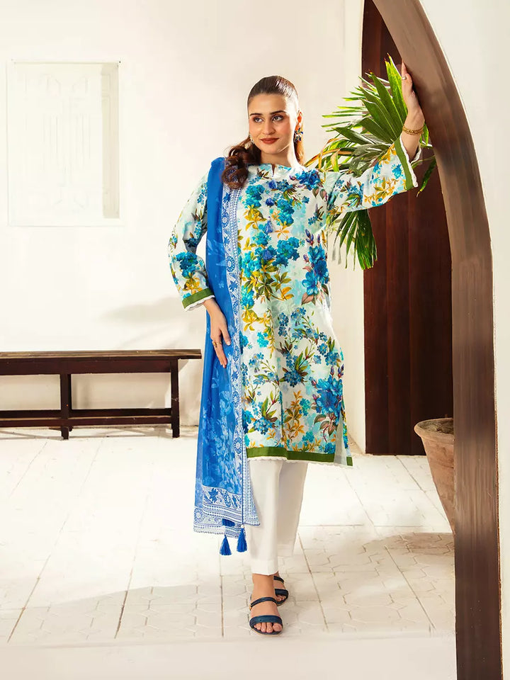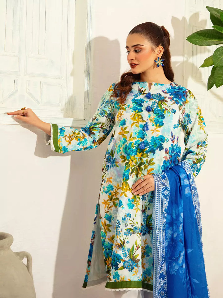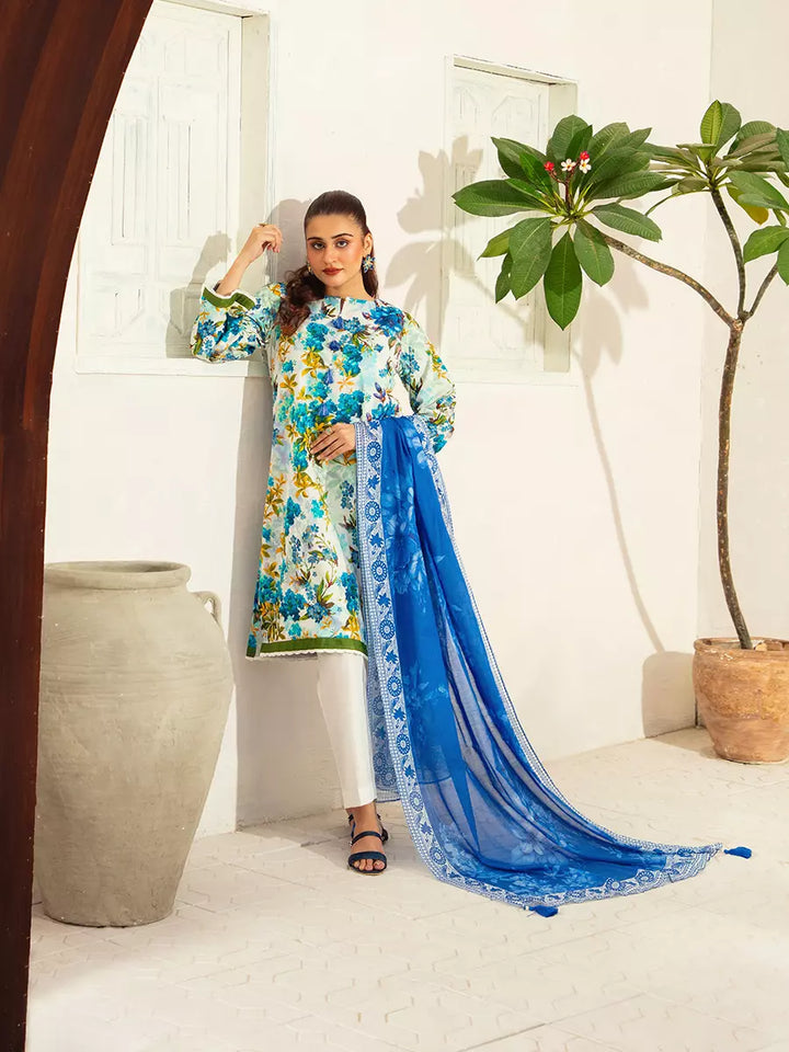 Style up your wardrobe with 3-Piece Unstitched Lawn Collection. Featuring a vibrant Lawn printed shirt, cambric dyed trouser, and a beautifully Lawn printed dupatta.