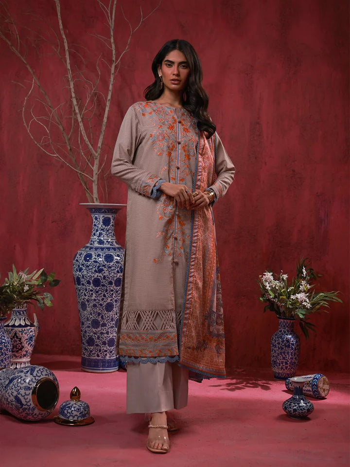 In ethereal dusty purple adorned with vibrant bright orange embroidery, this ensemble exudes a captivating harmony, complemented by a striking orange dupatta for a truly mesmerizing allure