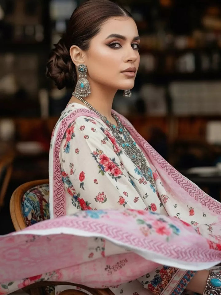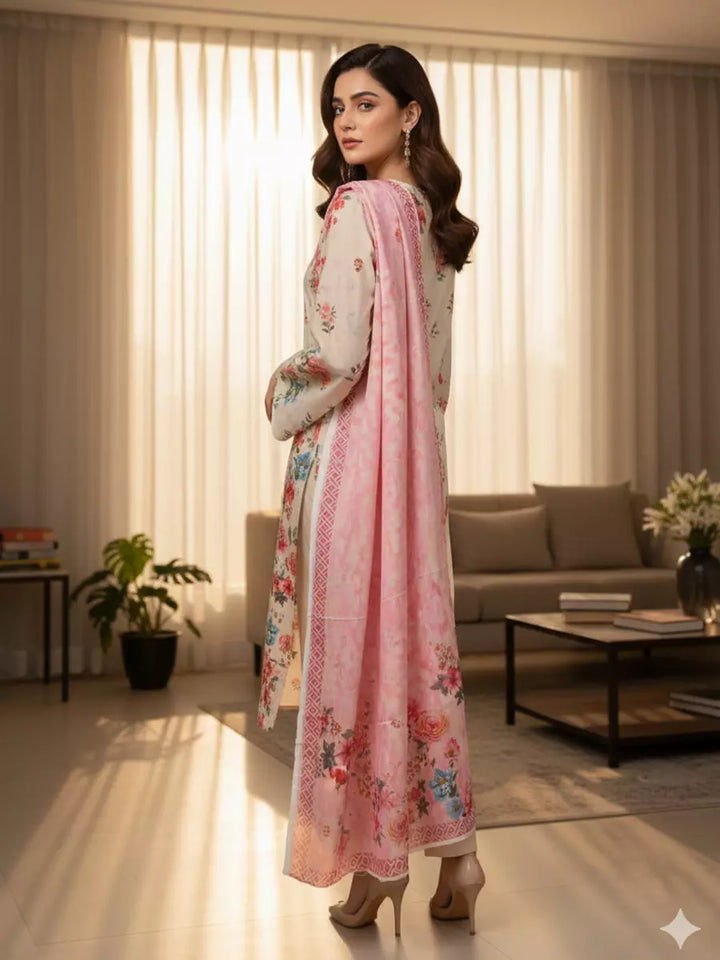 Style up your wardrobe with 3-Piece Unstitched Cambric Collection. Featuring a vibrant Cambric printed shirt, cambric dyed trouser, and a beautifully Lawn printed dupatta.