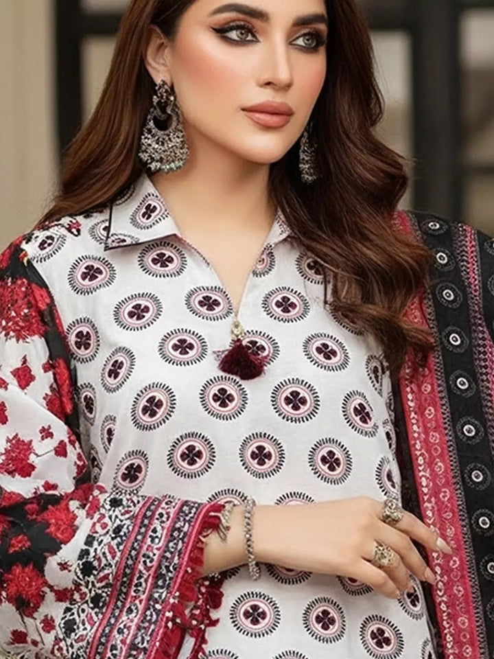 Style up your wardrobe with 3-Piece Unstitched Cambric Collection. Featuring a vibrant Cambric printed shirt, cambric dyed trouser, and a beautifully Lawn printed dupatta.