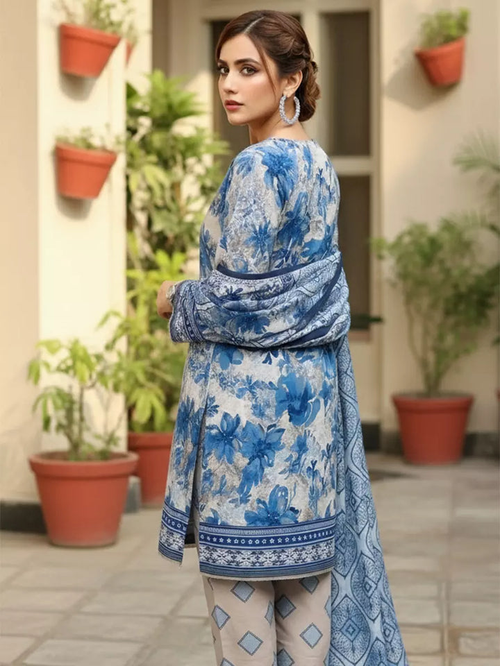 Elegant 3-piece khaddar suit featuring a beautifully printed khaddar shirt, printed khaddar dupatta, and a coordinated printed trouser. Crafted from soft winter khaddar fabric, this outfit combines comfort with timeless floral charm, perfect for everyday elegance and seasonal style.