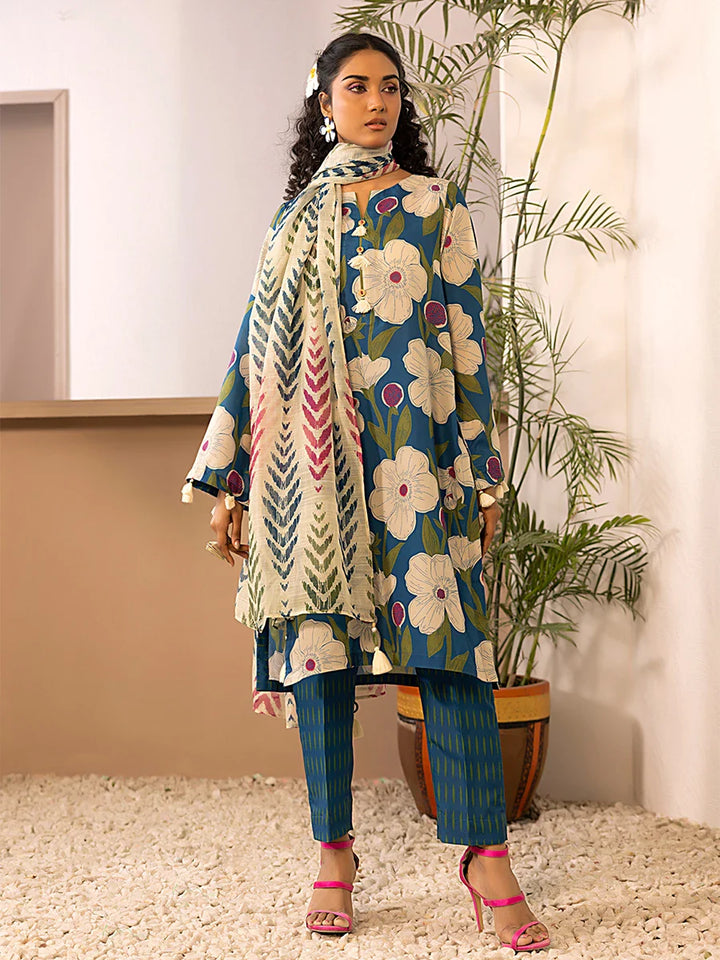 3pc Unstitched Printed Silk Lawn Suit (ASI066)