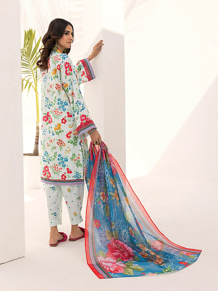 3PC Unstitched Printed Lawn Silk Suit (ASI091)