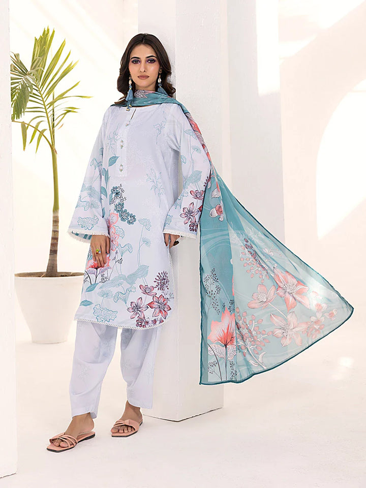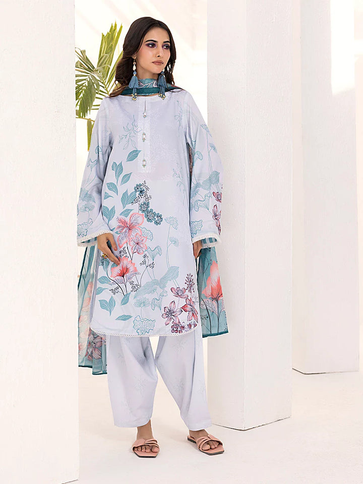 3PC Unstitched Printed Lawn Silk Suit (ASI099)