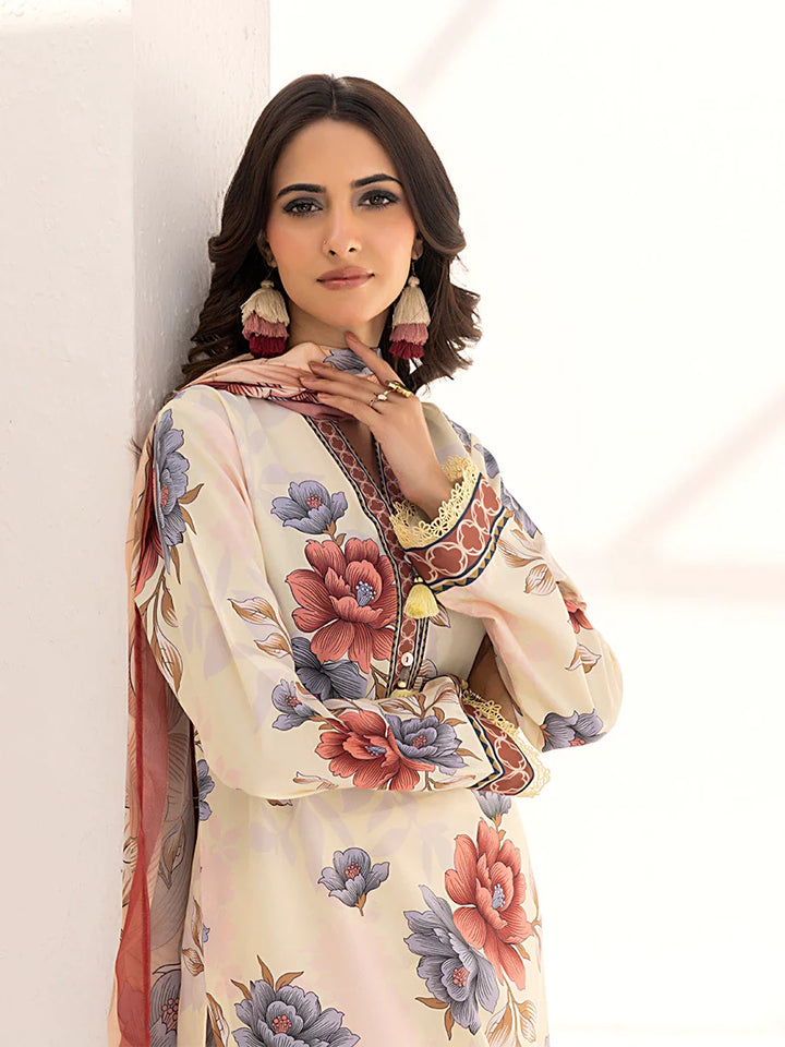 3PC Unstitched Printed Lawn Silk Suit (ASI101)