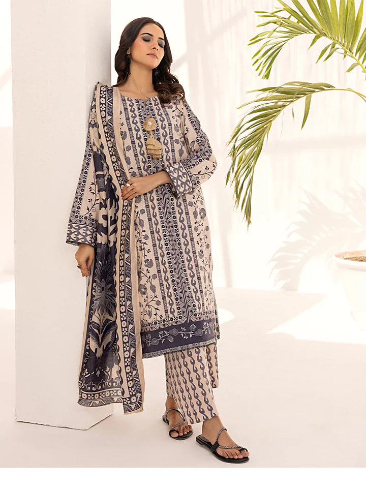 3PC Unstitched Printed Lawn Silk Suit (ASI102)