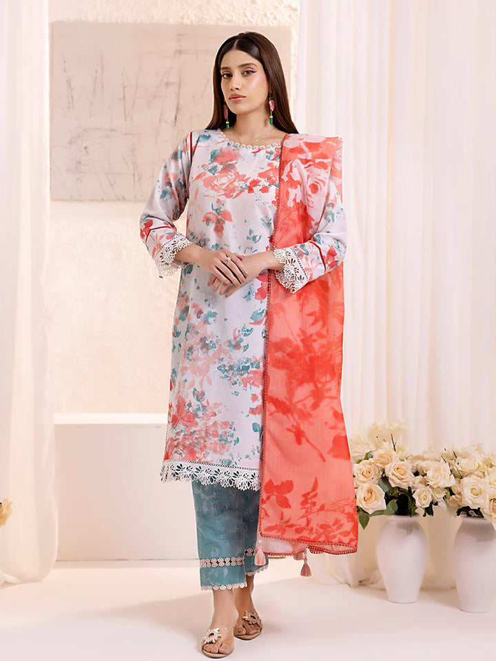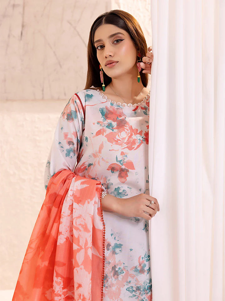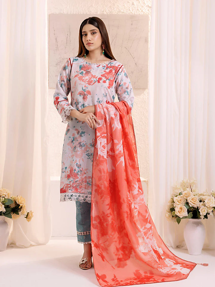 3pc Unstitched Lawn Silk Printed Suit (ASI132)