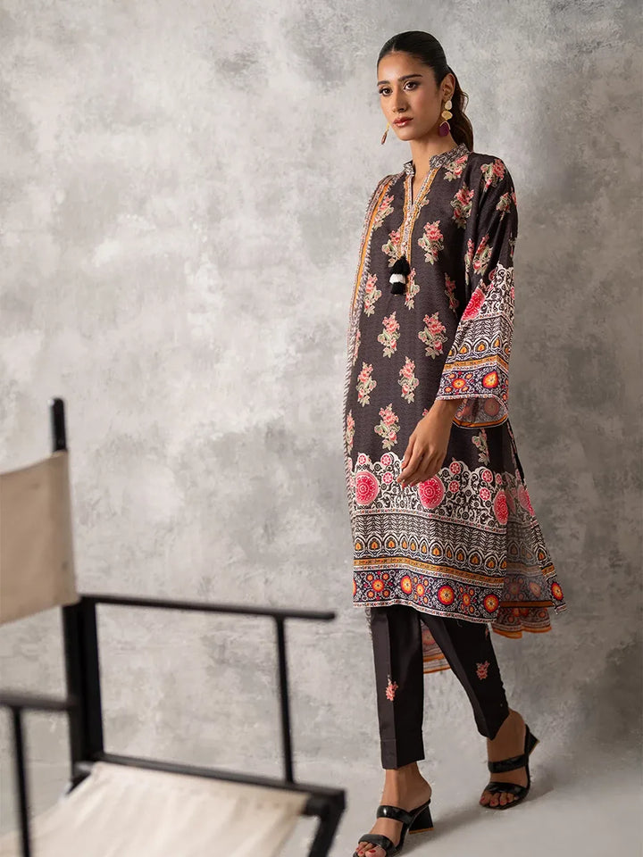 3pc Unstitched - Printed Lawn Silk Suit (ASI026)