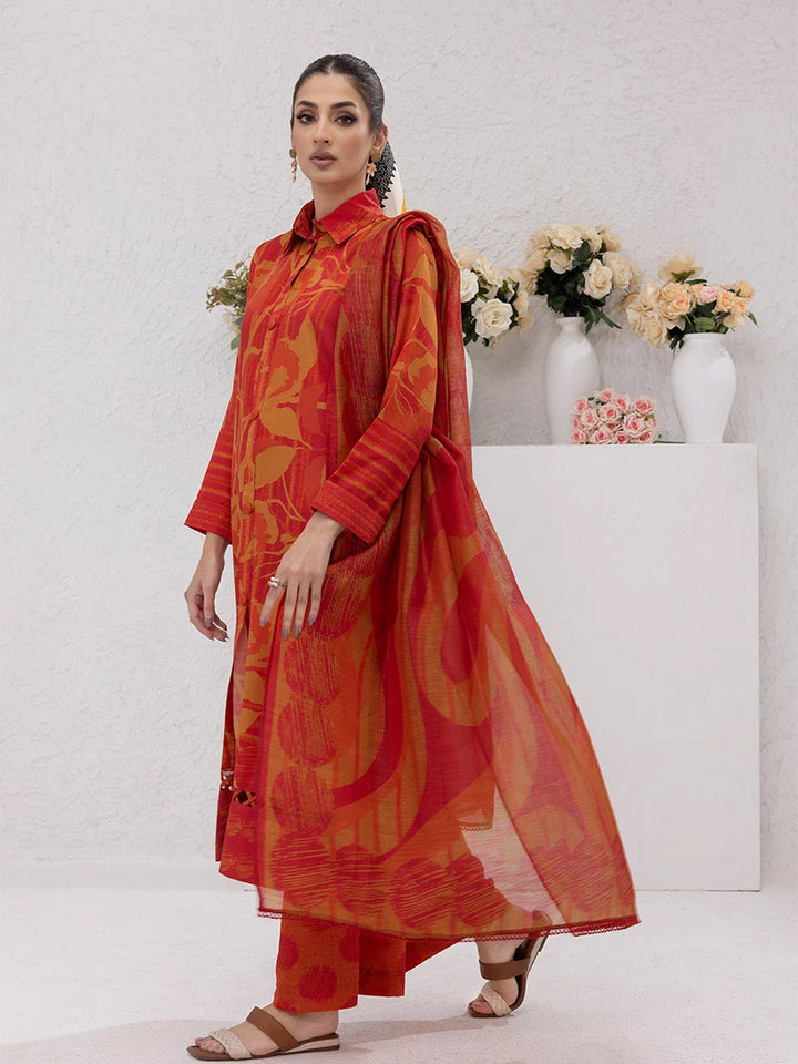 3PC Unstitched Printed Lawn Silk Suit (ASI087)
