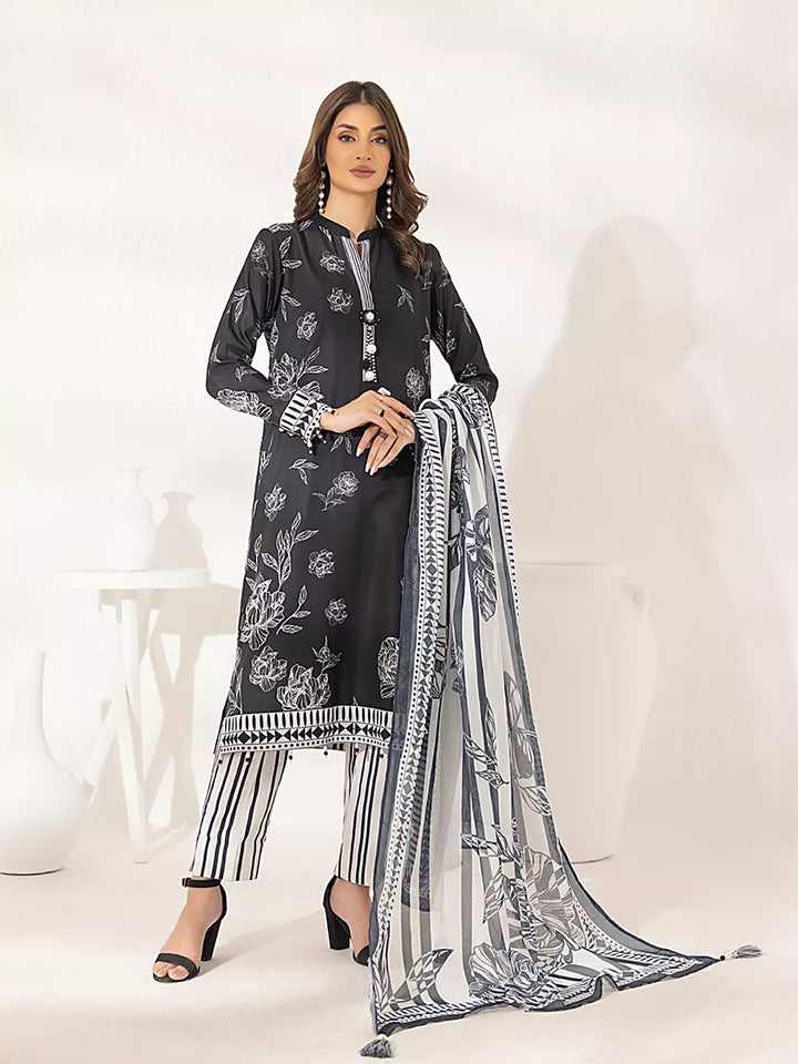 3PC Unstitched Printed Lawn Silk Suit (ASI286)