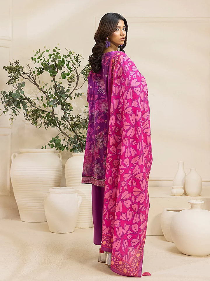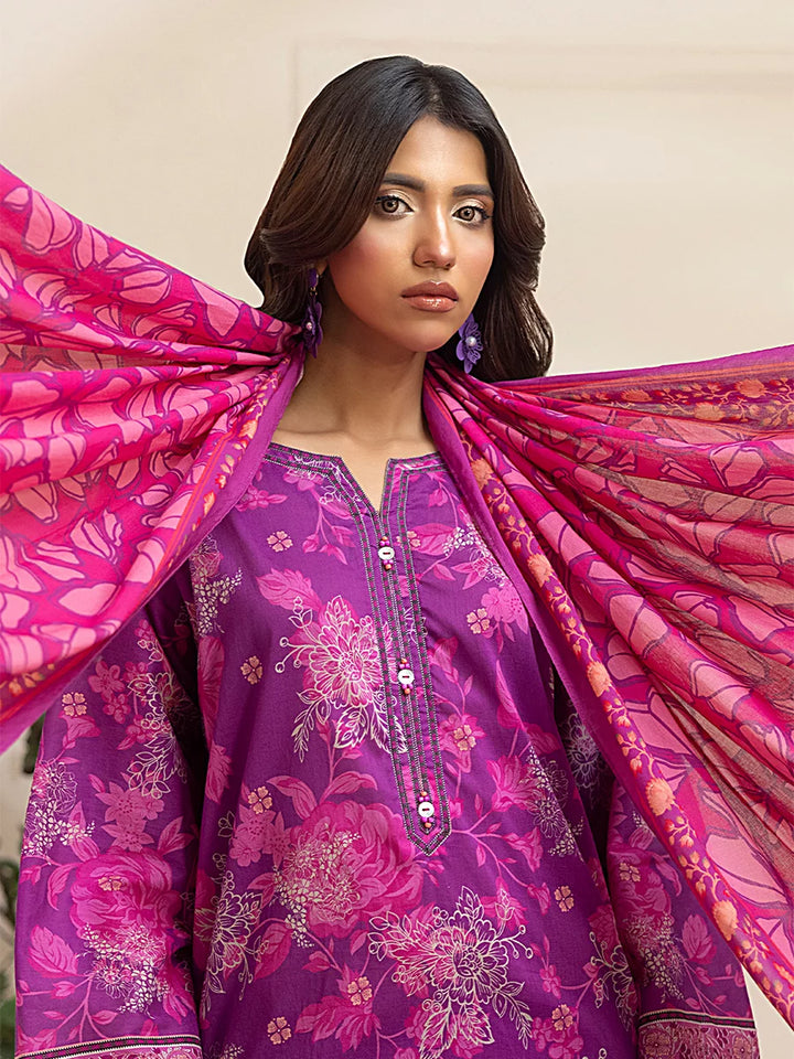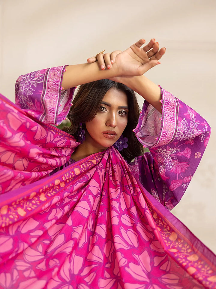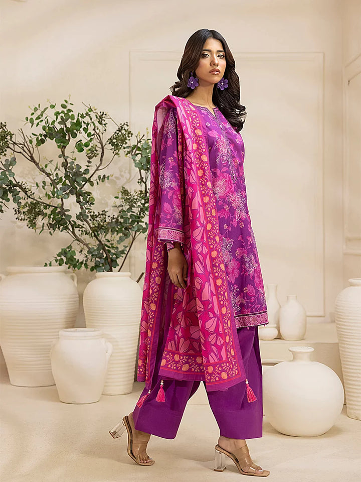 Brighten up your wardrobe with our 3-Piece Unstitched Lawn Collection. Featuring a vibrant printed shirt, cambric dyed trouser, and a beautifully printed dupatta.