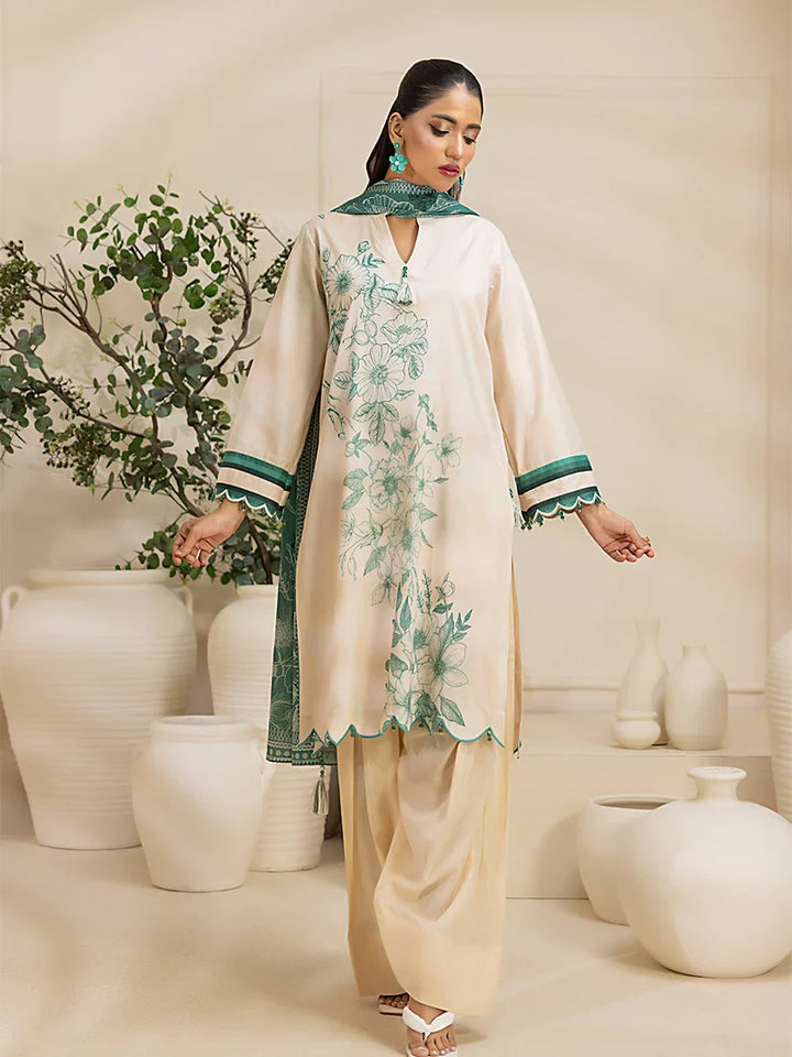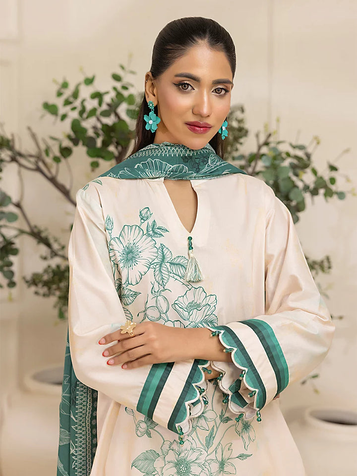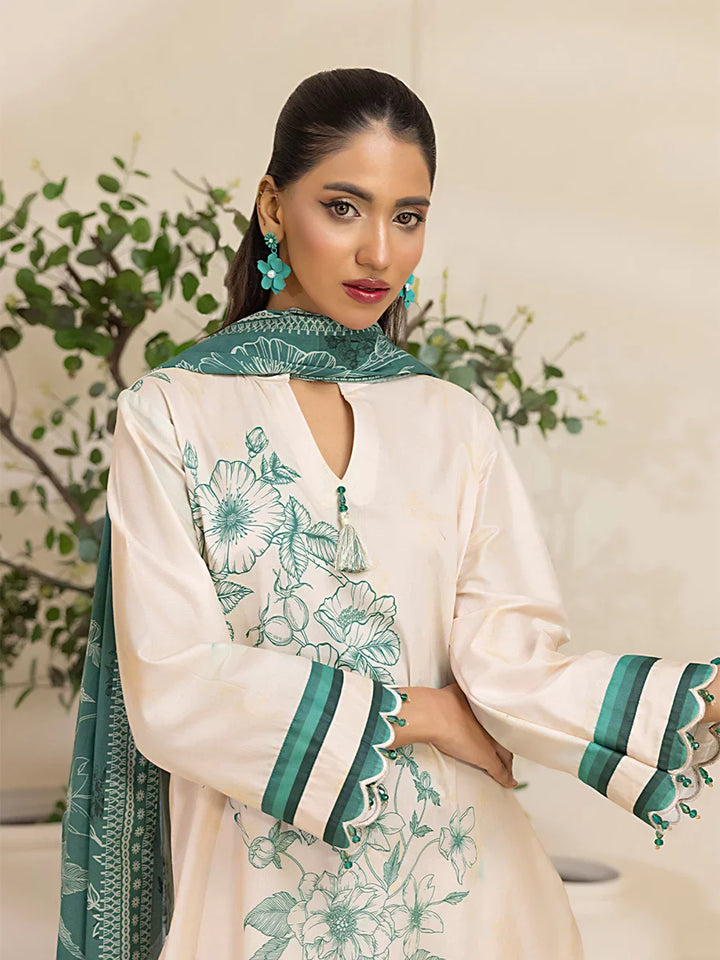 Brighten up your wardrobe with our 3-Piece Unstitched Lawn Collection. Featuring a vibrant printed shirt, cambric dyed trouser, and a beautifully printed dupatta.