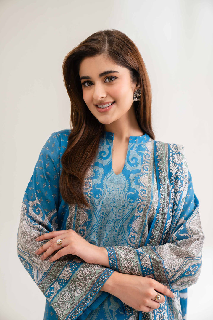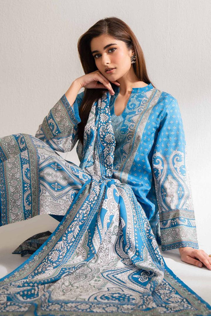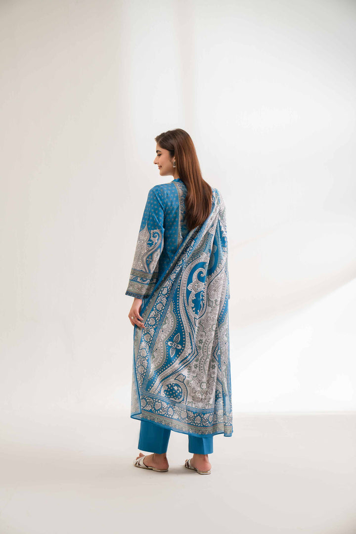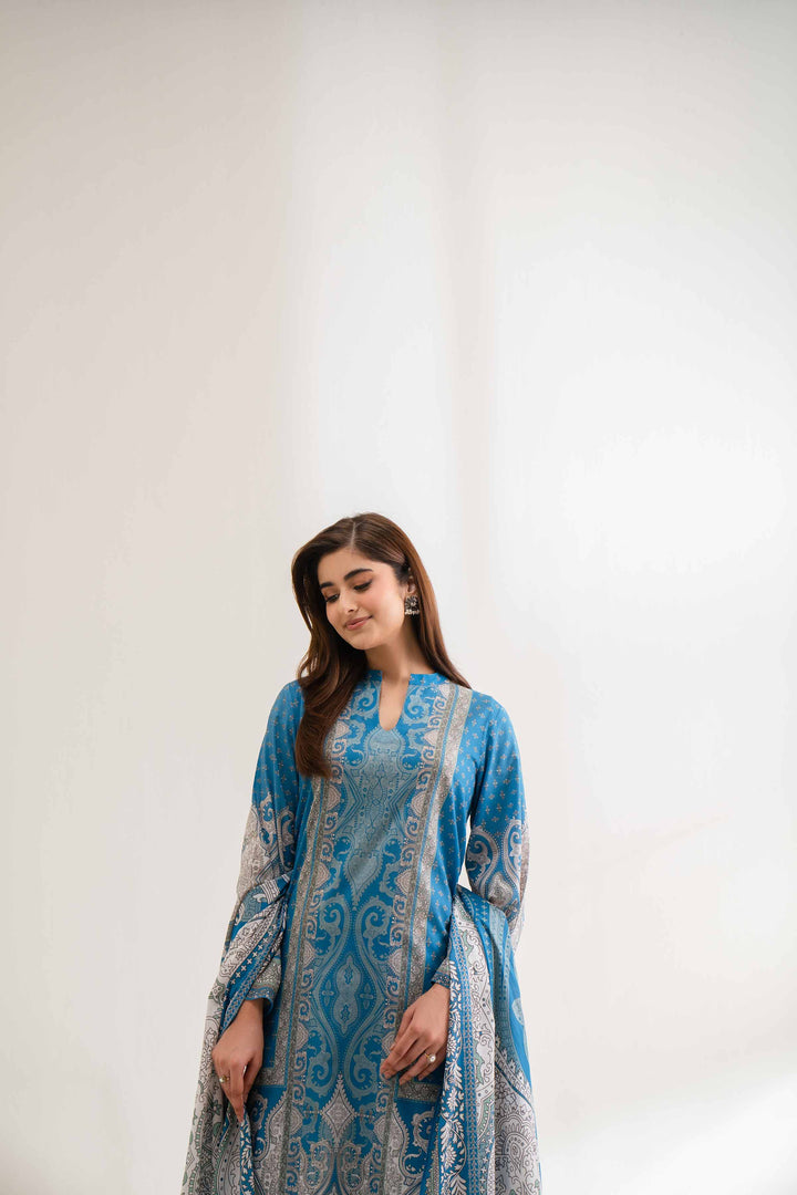 Modern silhouettes, cultural roots with this digitally printed three-piece from the latest unstitched Winter Collection.