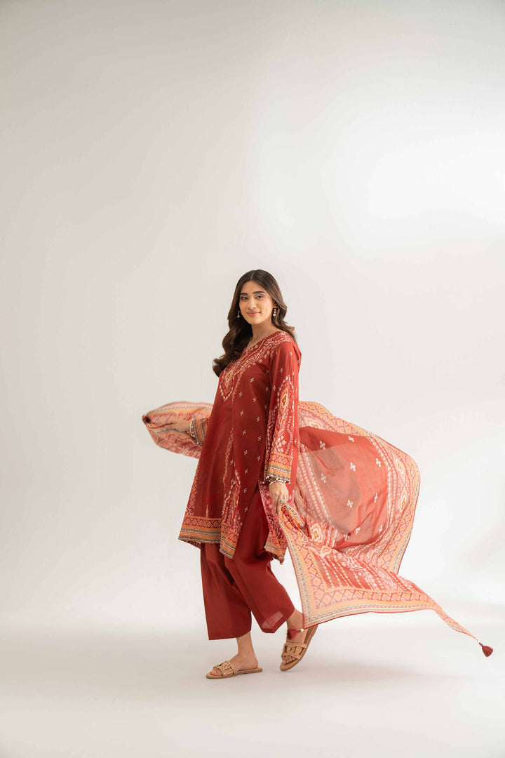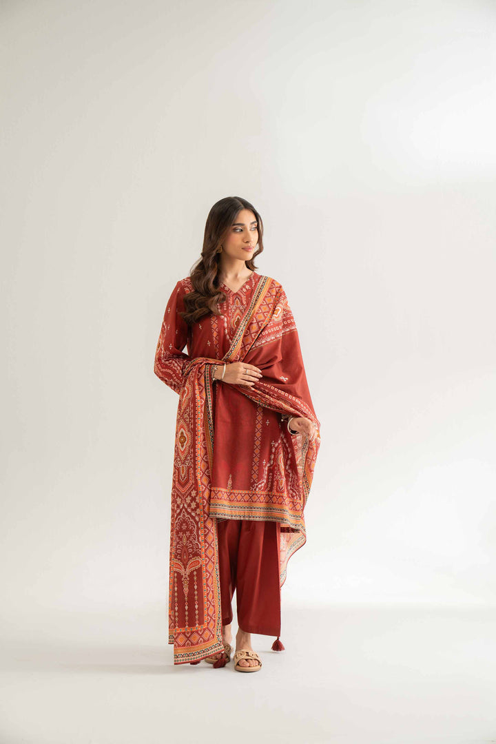 Celebrate every moment with timeless flair with this digitally printed three-piece from the latest unstitched Winter Collection.