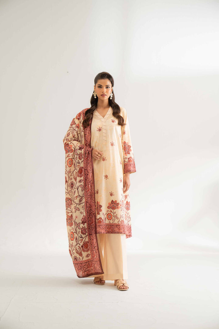 Crafted for cultural expression with this digitally printed three-piece from the latest unstitched Winter Collection.