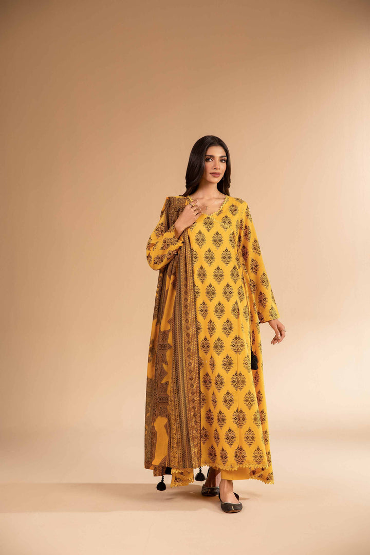 Elegant simplicity, cultural depth with this printed three-piece from the latest unstitched Winter Collection, crafted for vibrant style and effortless comfort.
