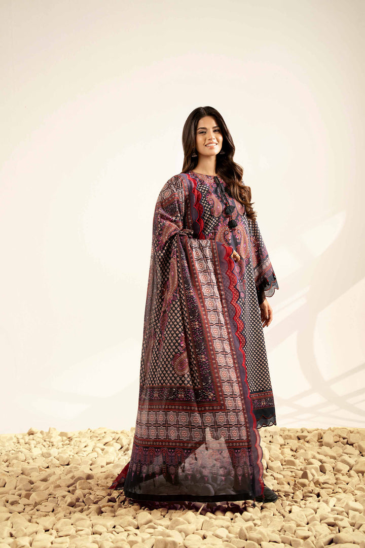 A seamless blend of heritage and comfort with this digitally printed three-piece from the latest unstitched winter collection.