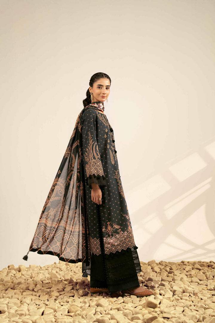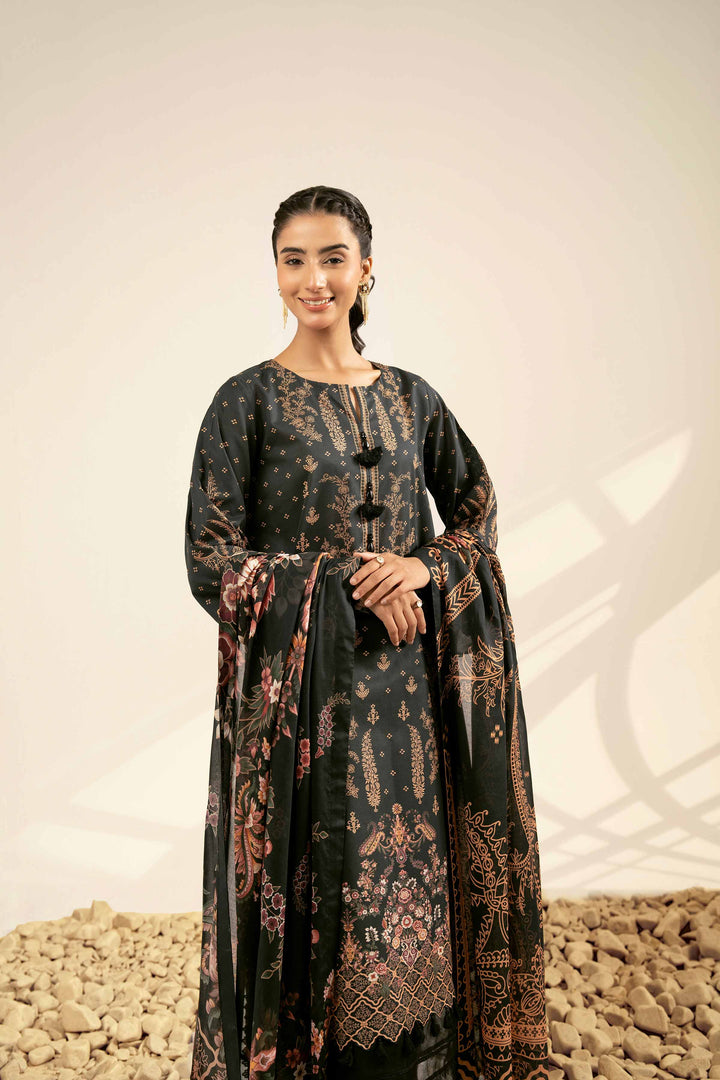 A seamless blend of heritage and comfort with this digitally printed three-piece from the latest unstitched winter collection.