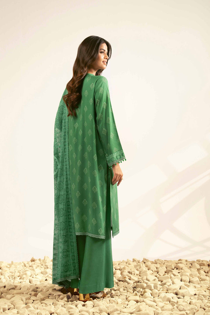 A touch of culture, a world of elegance with this printed three-piece from the latest unstitched winter collection.