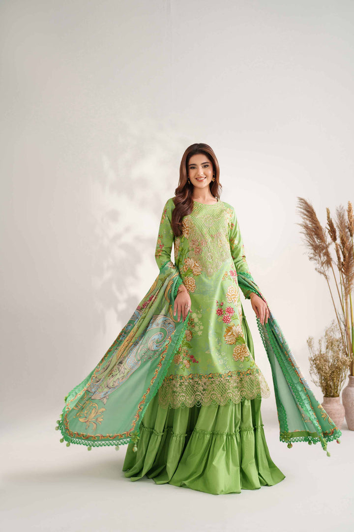 Effortless beauty, rooted in tradition with this digitally printed embroidered three-piece from the latest unstitched Winter Collection, crafted for vibrant style and effortless comfort.