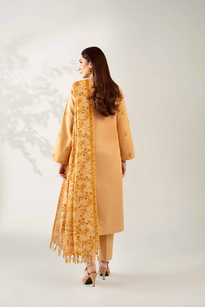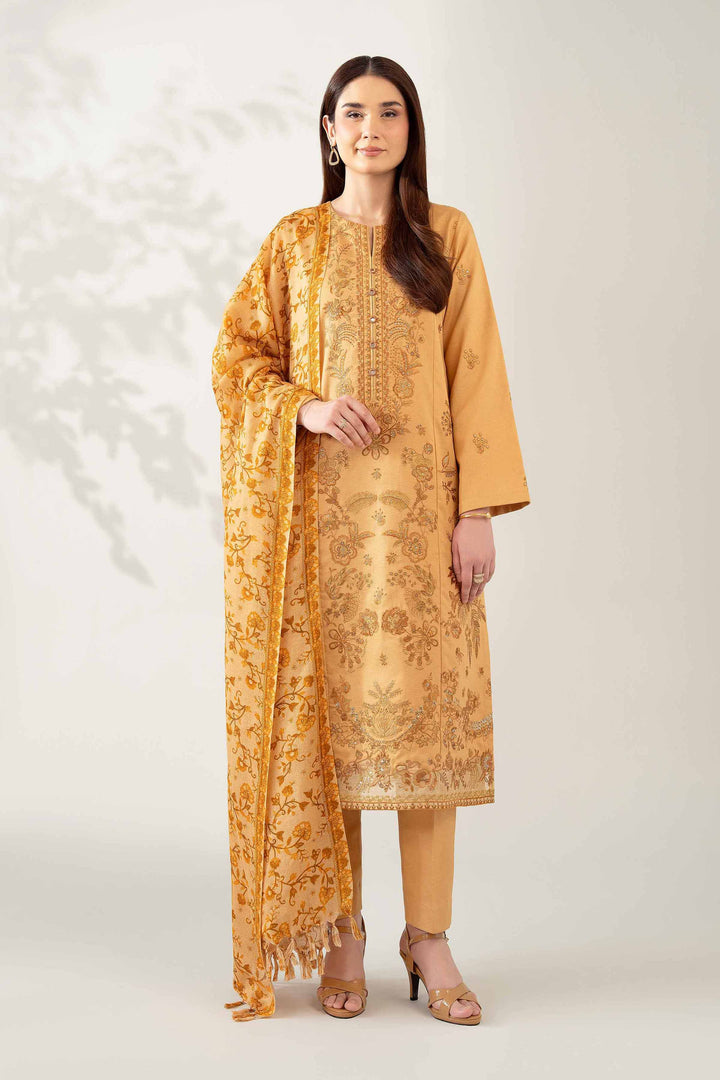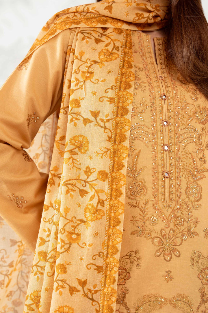 Heritage you can wear every day with this digitally printed embroidered three-piece from the latest unstitched Winter Collection.