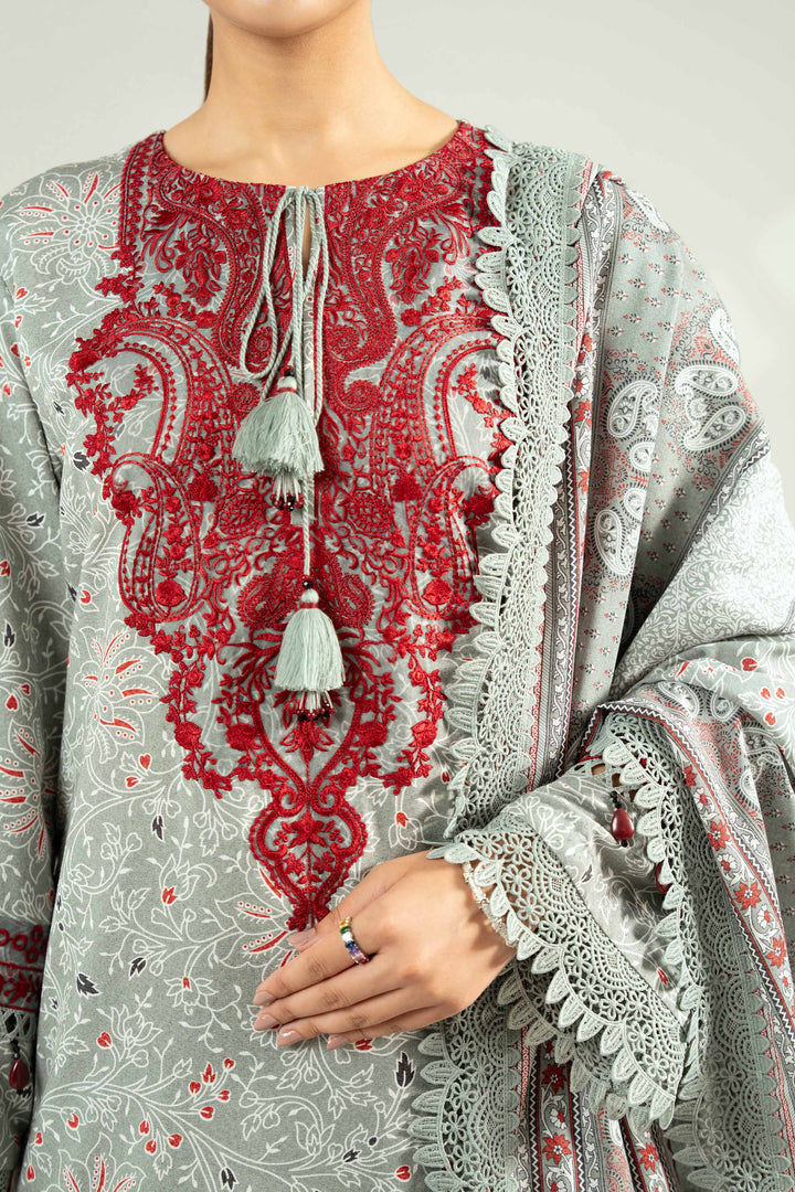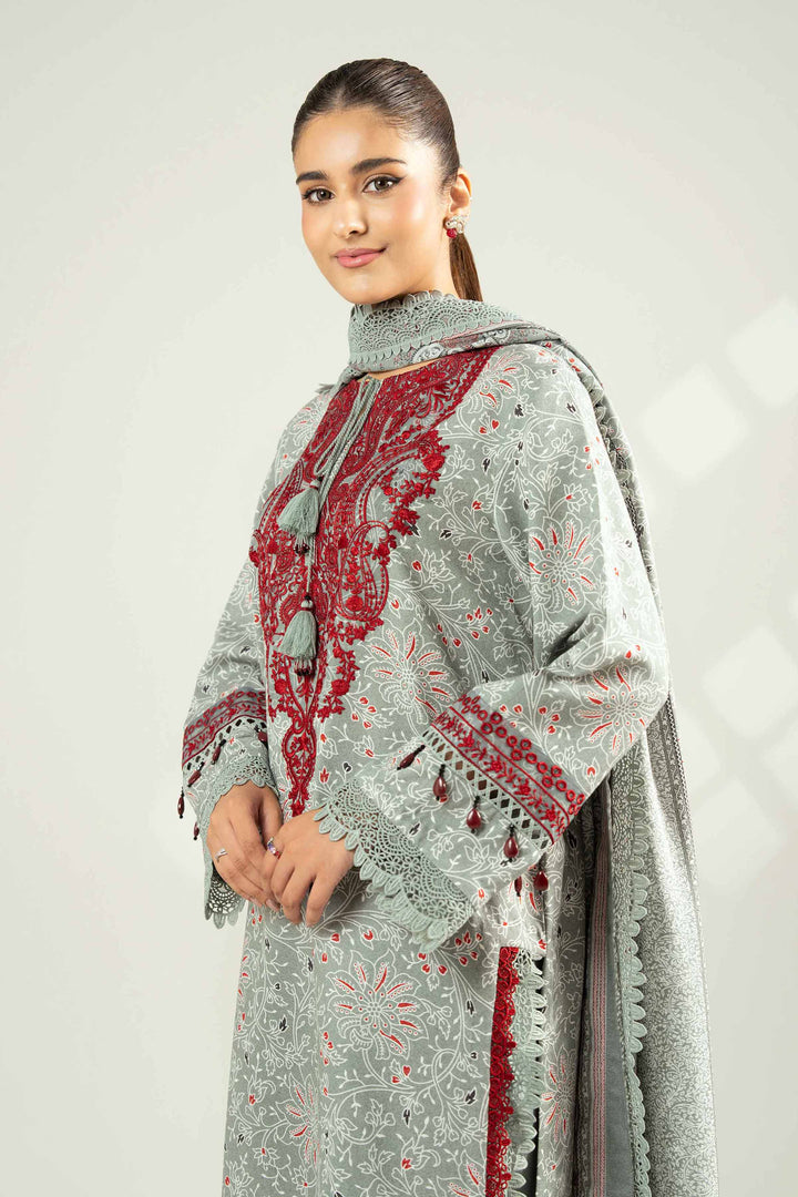 Wear your heritage with effortless pride with this printed embroidered three-piece from the latest unstitched Winter Collection, crafted for vibrant style and effortless comfort.