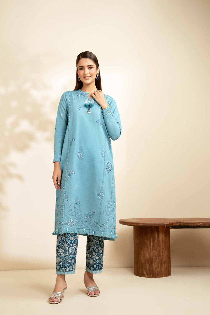 A design language of elegance and ease with this printed embroidered two-piece from the latest unstitched Winter Collection.