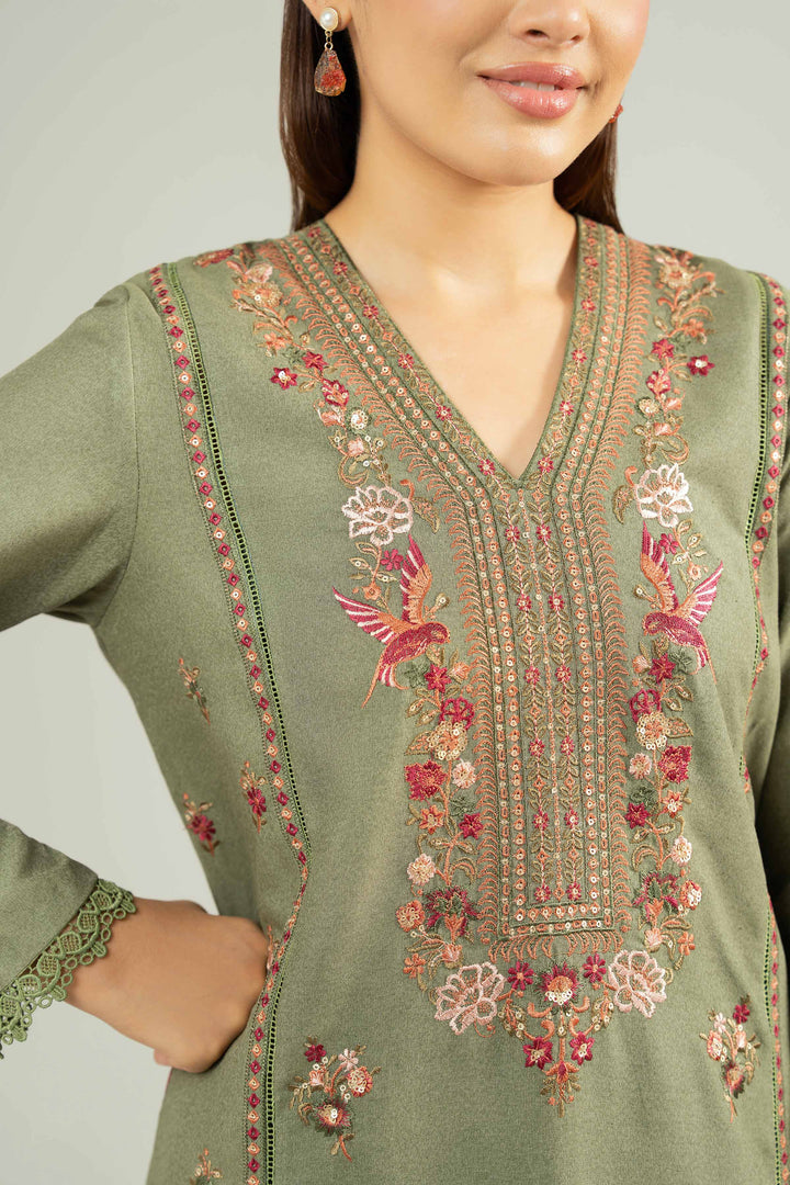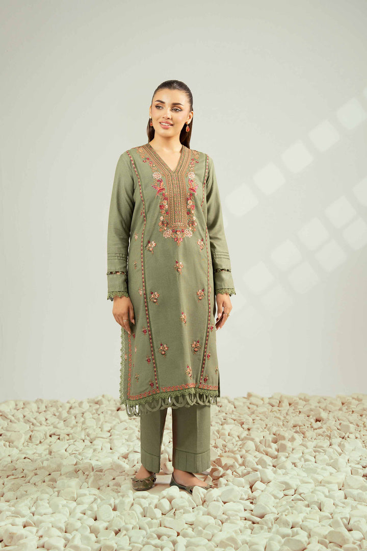 The perfect harmony of comfort and elegance with this embroidered two-piece from the latest unstitched Winter Collection.