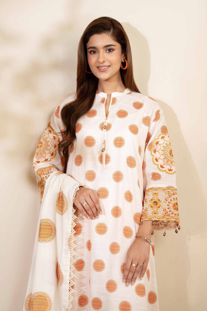 Timeless artistry, modern elegance with this printed embroidered three-piece from the latest unstitched Winter Collection.