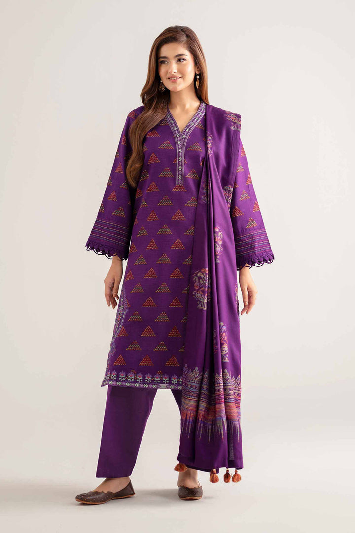 Timeless artistry, modern elegance with this printed embroidered three-piece from the latest unstitched Winter Collection.