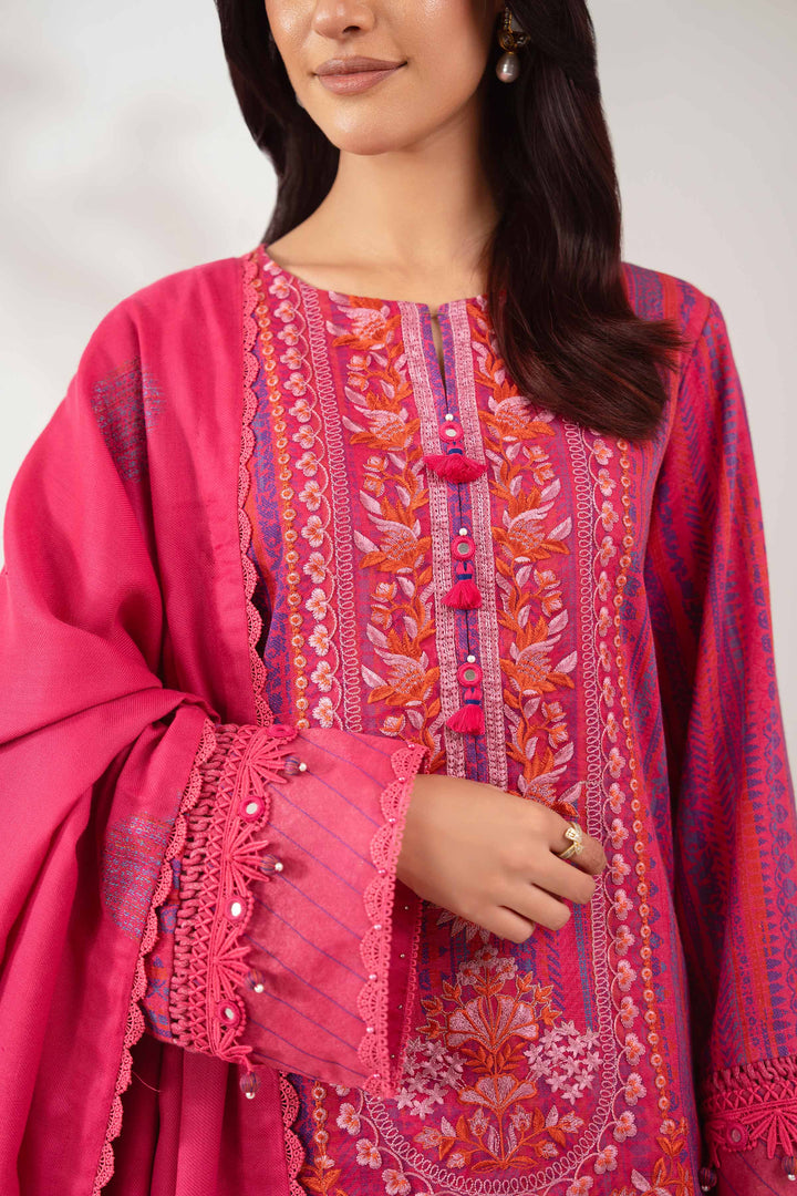 Timeless artistry, modern elegance with this printed embroidered three-piece from the latest unstitched Winter Collection.