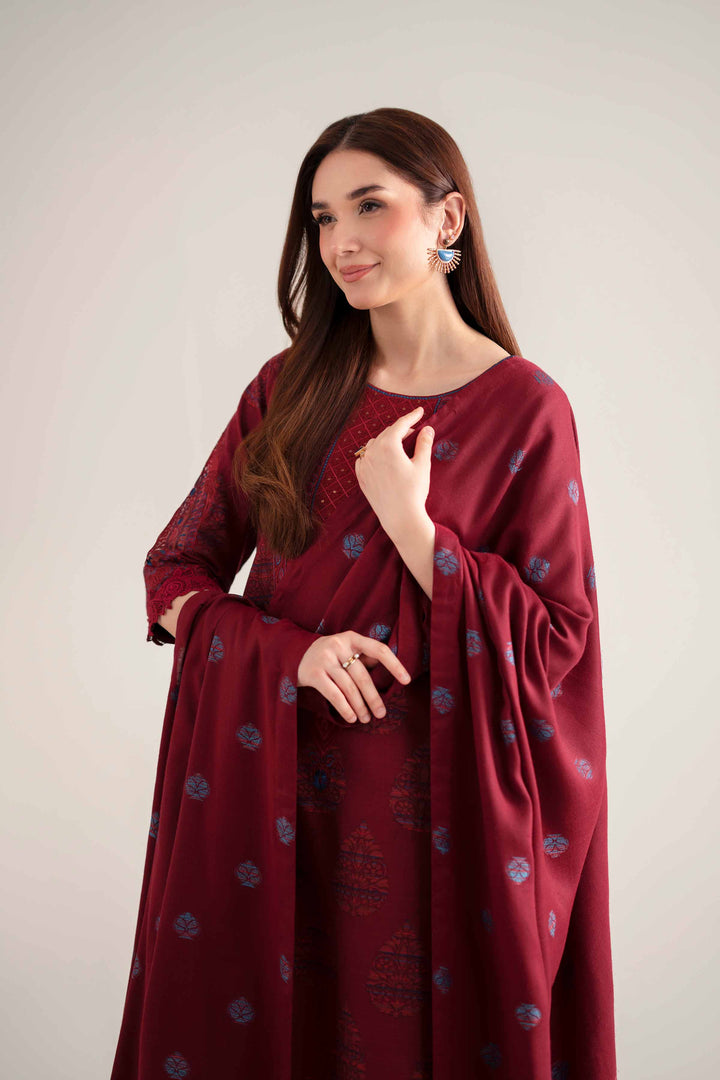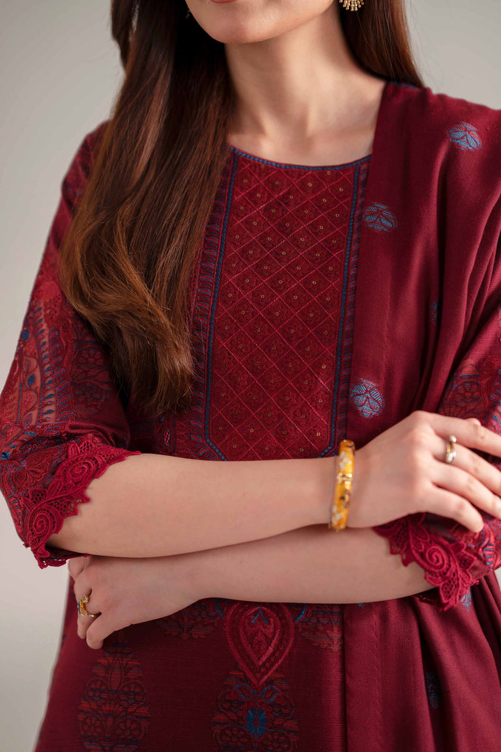 Celebrate tradition in every detail with this printed embroidered three-piece from the latest unstitched Winter Collection.